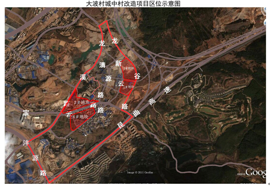 大波村城中村改造项目位于盘龙区龙泉办事处源清社区,项目总用地面积约291亩,其中:地块一四至范围:东至规划新龙南路,南至轨道交通首期工程用地,西至规划龙溪南路,北至规划的部队用地,用地面积约189.46亩;地块二四至范围:东至规划龙谷路,南至云龙路,西至盘龙区保障性住房用地,北至盘龙区保障性住房用地,用地面积约101.59亩。该项目是公司第一个以社会投资人身份参与建设的项目,目前已建成。