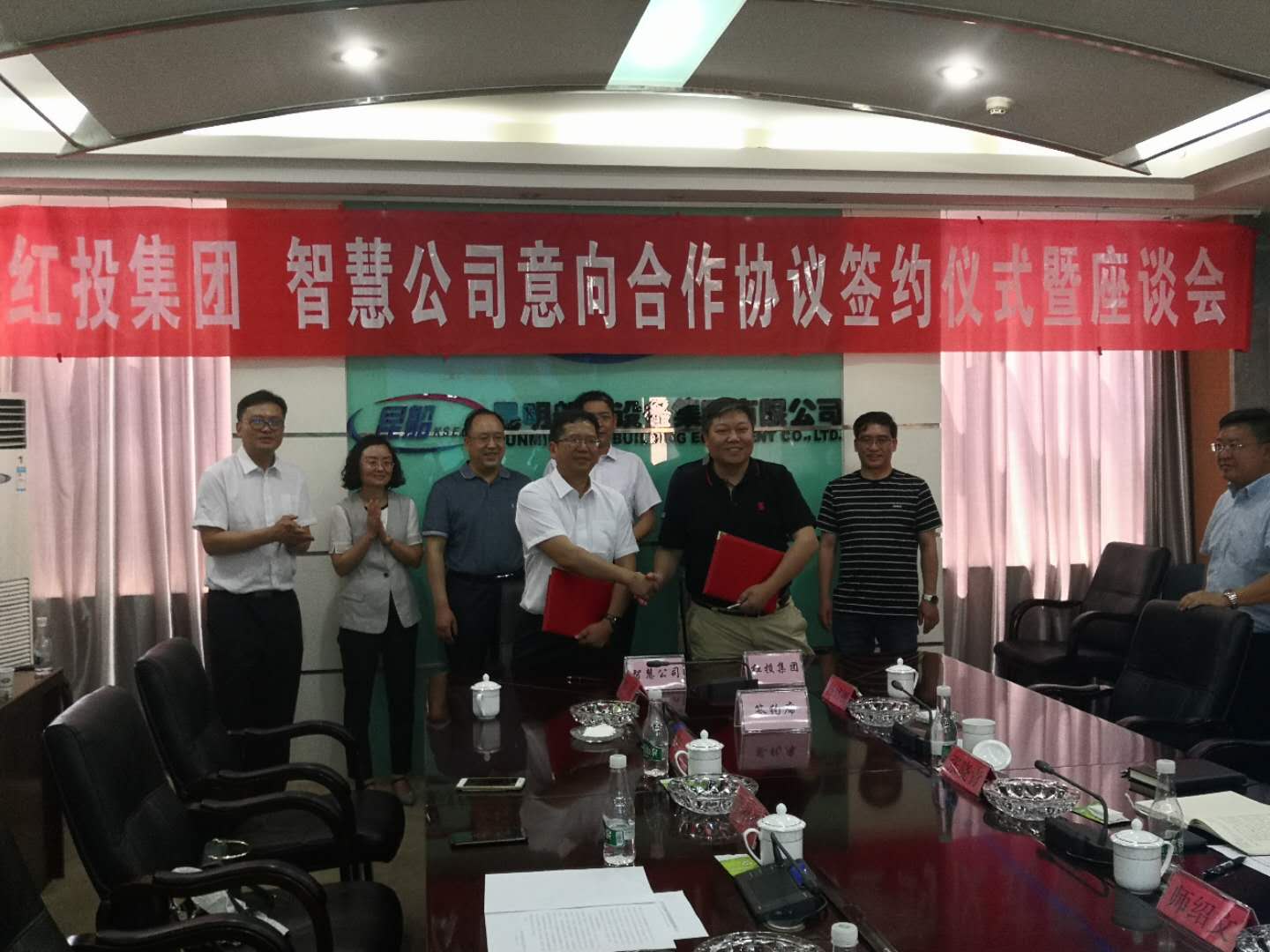 5月10日下午,昆明交投公司下属昆明市智慧停车建设运营有限公司(以下简称“智慧公司”)与红河州开发投资控股集团有限公司(以下简称“红投集团”)进行意向合作协议签约仪式。智慧公司总经理张智勇、副总经理蔡光能、财务总监周璇、总工程师卯彦;红投集团党委书记、董事长师绍文,总裁罗忠,副总裁张晓青等出席会议。