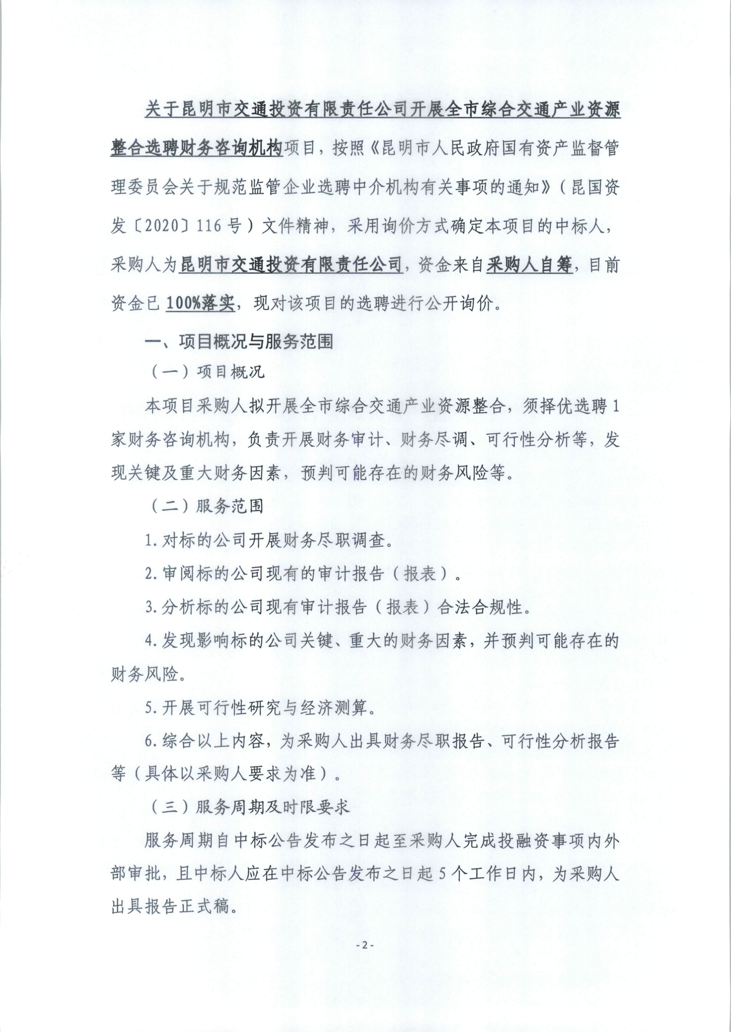 财务咨询机构询价公告