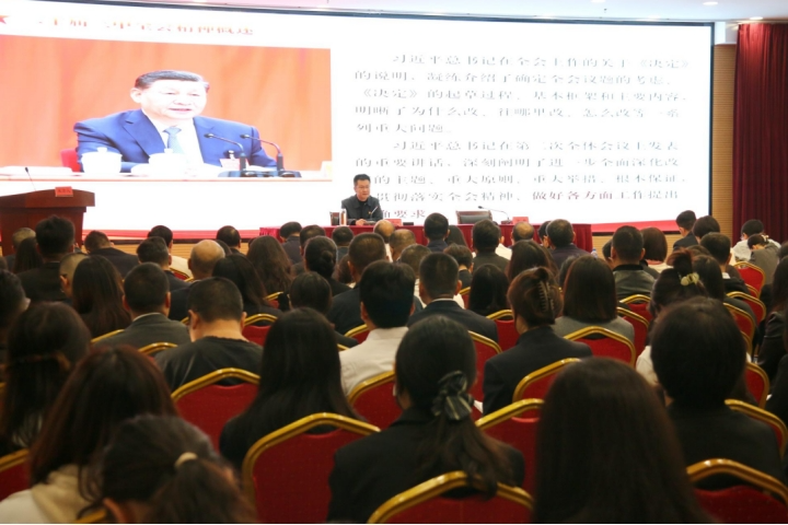 宣讲会上,马东山紧扣深入学习领会二十届三中全会精神、省委十一届六次全会精神及市委十二届七次全会精神,全面准确理解《决定》提出的进一步全面深化改革重大举措和《决定》关于国资国企进一步全面深化改革的有关要求等方面,作了全面系统的宣讲和深入阐释,引导全体党员干部职工学深细悟全会精神,准确把握精髓要义,抓好全会精神的贯彻落实,全力抓实抓细改革发展工作,推动集团高质量发展实现新成效。