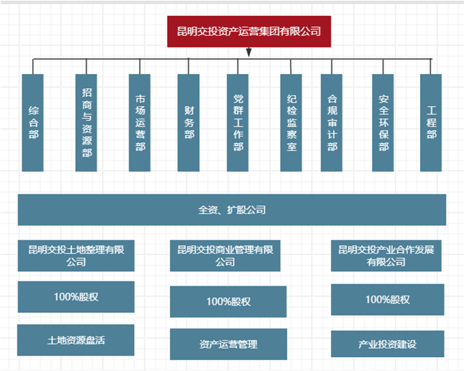 昆明交投资产运营集团有限公司(以下简称“资产运营集团”)是2006年9月13日经昆明市人民政府国有资产监督管理委员会“昆国资复(2006)128号”批准,由太阳集团tyc33455独资设立,于2006年10月24日登记注册成立,原名为昆明新机场基础配套设施建设有限公司,主要负责昆明空港经济区和昆明新机场的征地拆迁以及基础设施建设任务。2009年7月2日由于经营范围的变化更名为昆明市基础设施投资建设有限公司。2022年6月30日,由于公司战略规划调整,更名为昆明交投城市投资发展集团有限公司。根据《资产运营集团重组方案》文件精神,于2025年6月27日改组更名为:昆明交投资产运营集团有限公司。