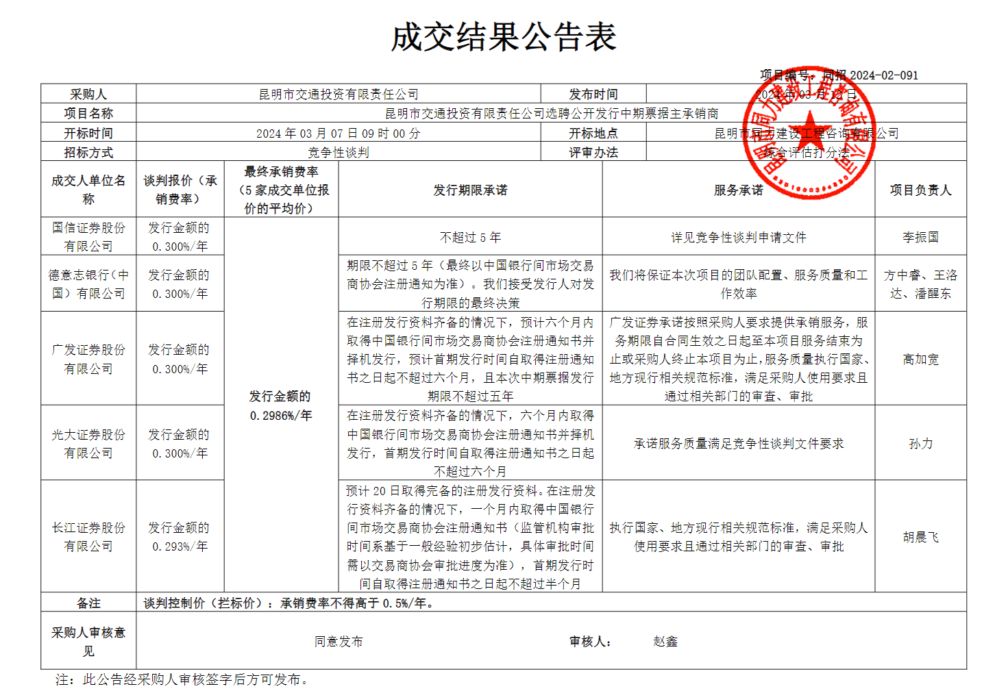 昆明市交通投资有限责任公司选聘公开发行中期票据主承...